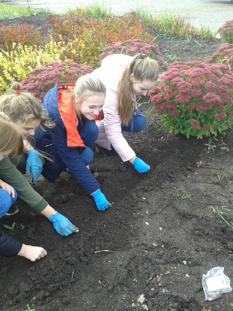В Арх-Голицинской школе прошла акция по посадке тюльпанов, приуроченная к 75-летию Победы в Великой Отечественной войне