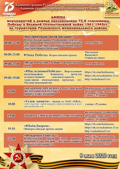 Сердечно поздравляем вас с 75-летнем воинской славы - Днем Победы в Великой Отечественной войне! 30 апреля 2020