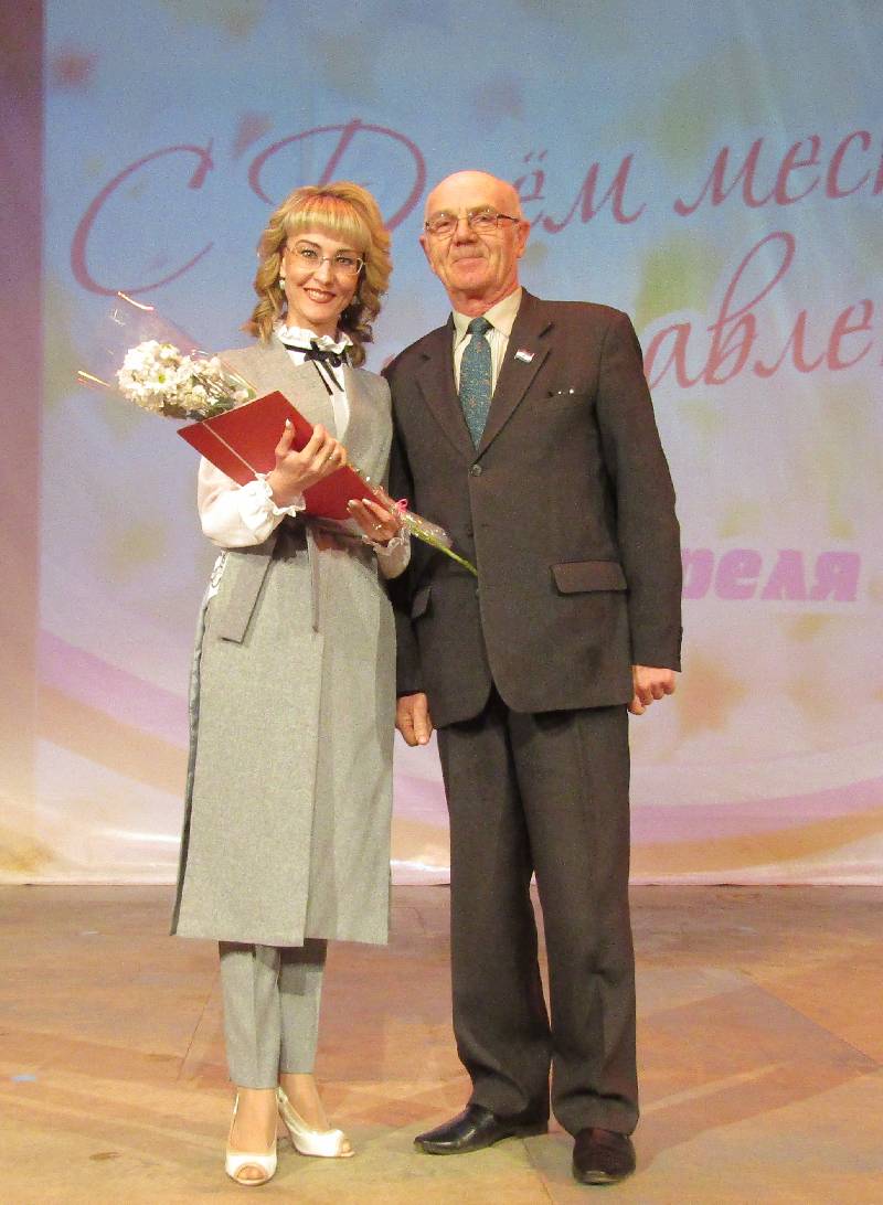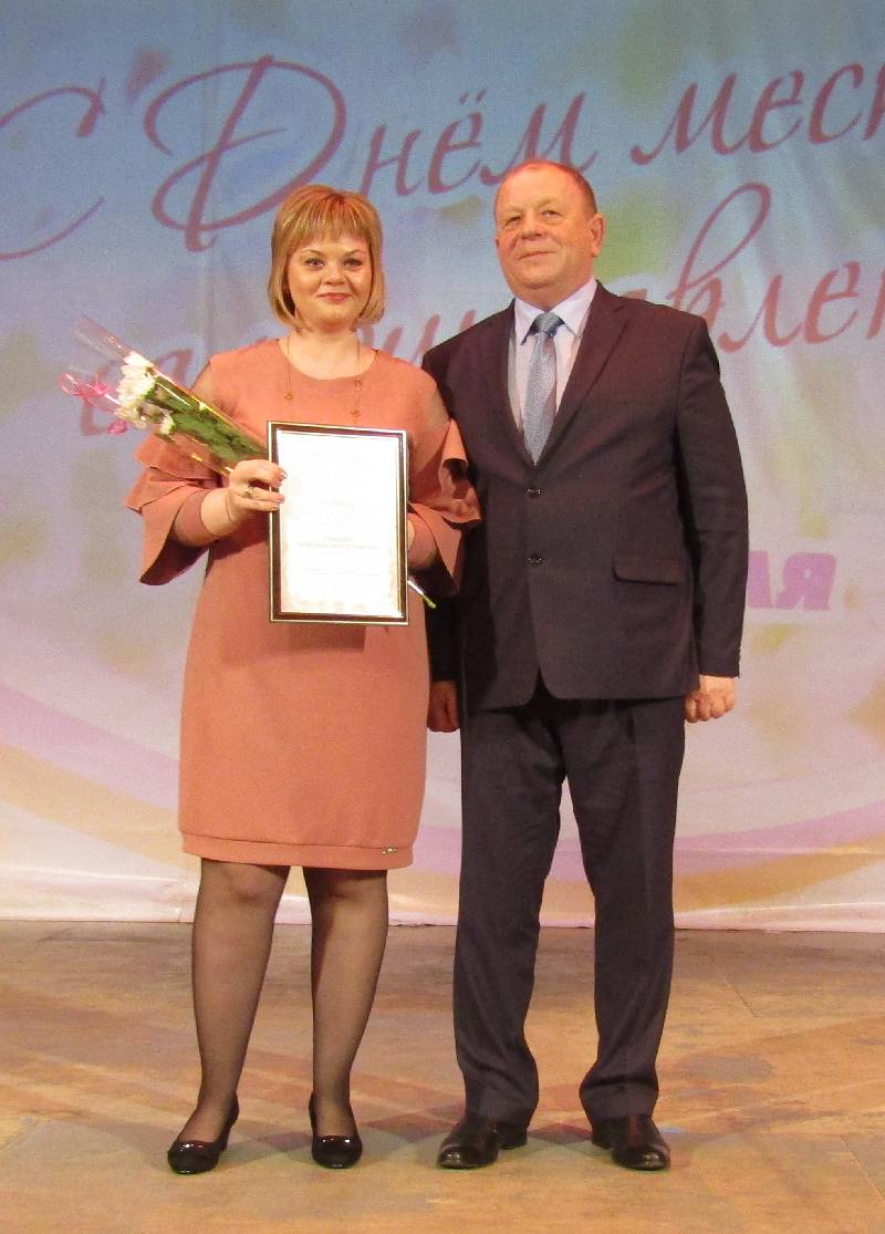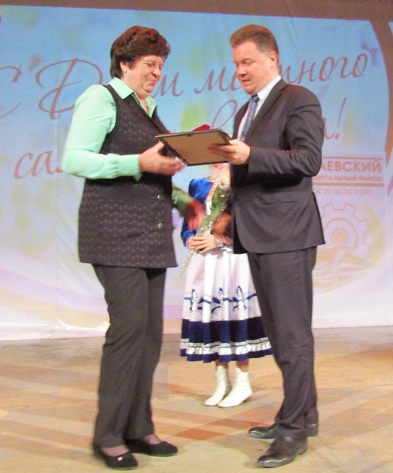 На сцену поднимались работники с солидным стажем: старейший муниципальный служащий в районе - глава администрации Сузгарьевского сельского поселения Раиса Миронова: ее стаж в органах местного самоуправления 38 лет.