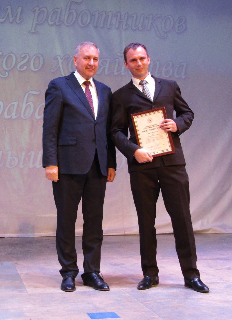 Нури Алыкову – заместителю директора по растениеводству ООО «Стрелецк» и Михаилу Зобину – главному инженеру ООО «Агросоюз-Красное Сельцо». Почетной Грамотой Республики Мордовия награждены: Михаил Киреев – механизатор ООО «Стрелецк», Наталья Красавцева – оператор птицефабрики ООО «Авангард», Нина Семочкина – оператор автоматизированной мойки ООО «НовоМилк», Любовь Удалкина – главный бухгалтер ООО «Агро К-С». Звание «Лауреат премии Главы Республики Мордовия» присуждено Ринату Арюкову – директору ООО «Стрелецк», Игорю Коробову – директору ООО «НовоМилк», Николаю Радаеву – заместителю директора ООО «Исток».