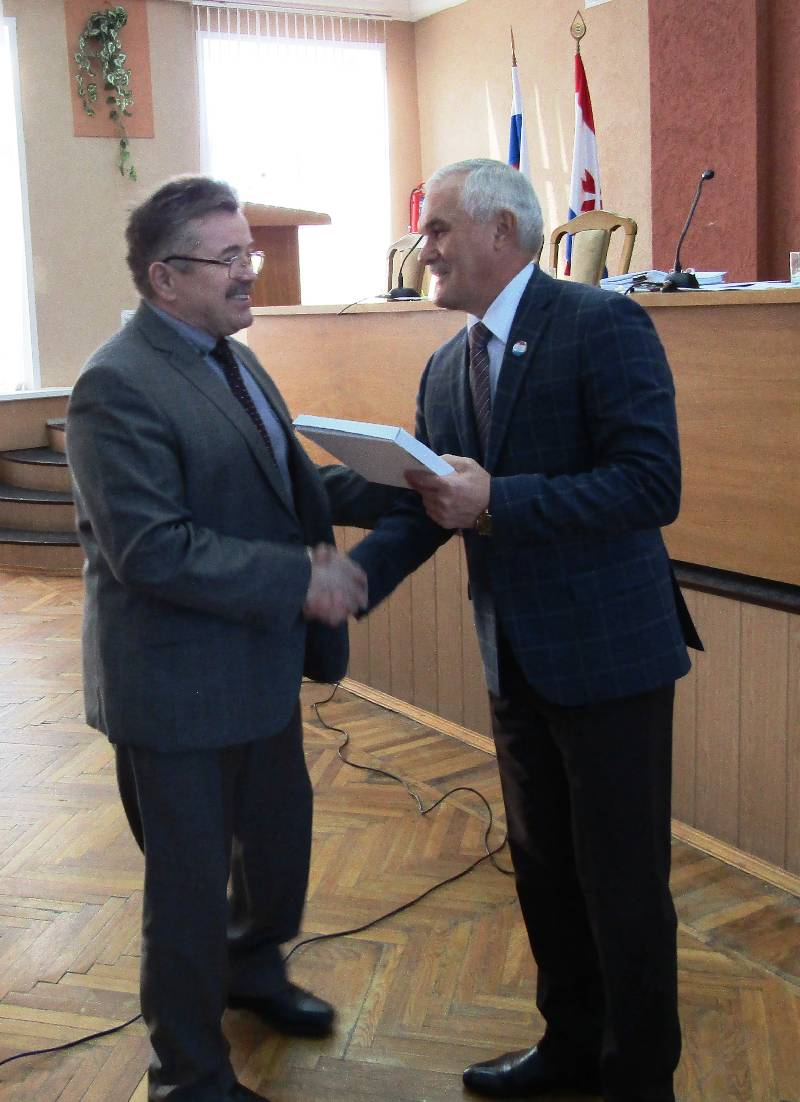 Перед началом обсуждения председатель Совета Вячеслав Марчков поздравил с днем рождения депутата от Татарско-Пишлинского сельского поселения Шавкета Резепова.
