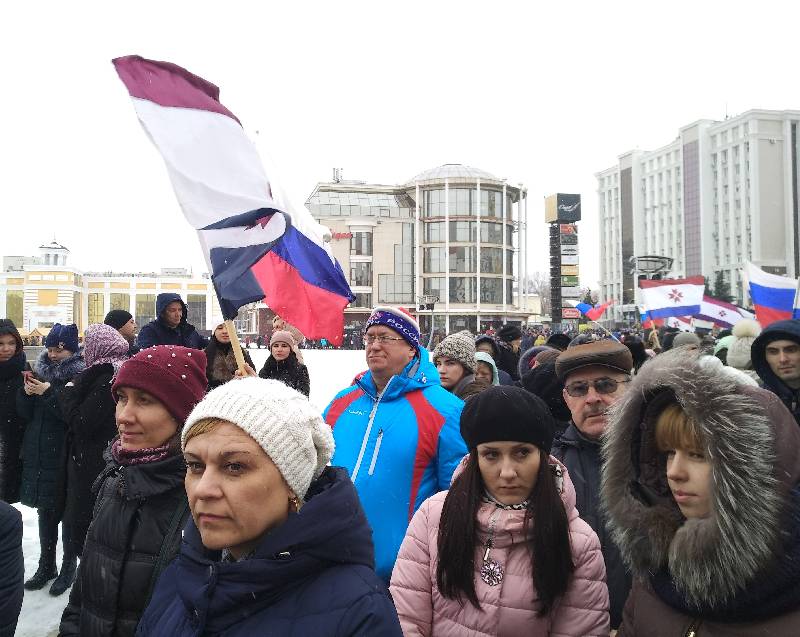 Несмотря на снежную погоду, чувствовалась теплая атмосфера. А согреться можно было горячим чаем у полевой кухни. Также на площади состоялся «Большой крымский концерт».
