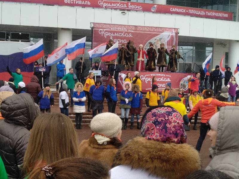 16 марта в центре столицы Мордовии состоялась акция, приуроченная к пятилетней годовщине вхождения Крыма в состав Российской Федерации. На площади 1000-летия был организован грандиозный флэшмоб, участниками которого стали разные поколения «артековцев».