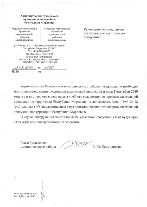 ВТОРОГО СЕНТЯБРЯ В РУЗАЕВКЕ БУДЕТ ОГРАНИЧЕНА ПРОДАЖА АЛКОГОЛЯ
