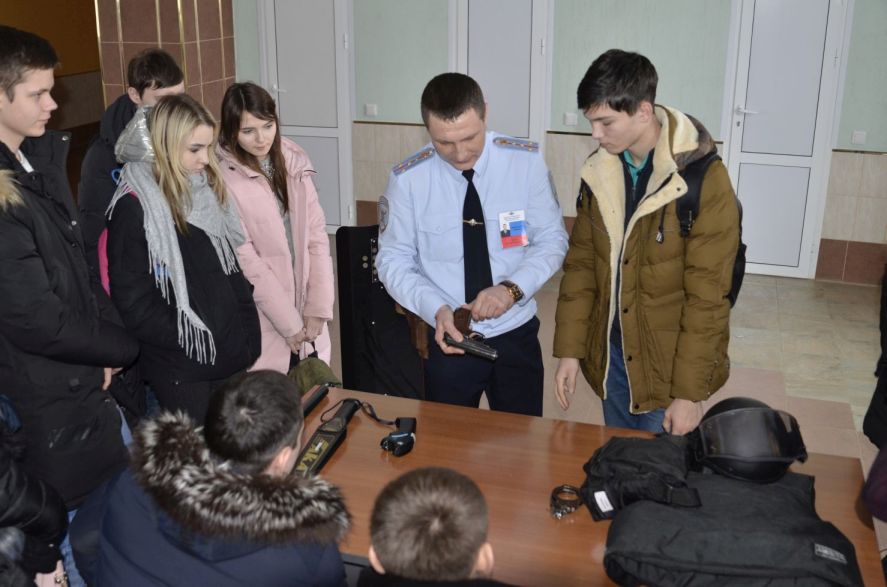 Знакомство ребят со службой в органах внутренних дел началось с визита в головное подразделение Рузаевского линейного отдела. Поприветствовал студентов заместитель начальника отдела Владимир Чебоксаров, который рассказал о специфике работы транспортной полиции и основных направлениях деятельности. Начальник отделения по работе с личным составом Ольга Девяткина проинформировала студентов о требованиях, предъявляемых к желающим поступить на службу в ОВД и условиях прохождения службы. Заместитель начальника полиции по охране общественного порядка Виталий Палицын озвучил статистику часто совершаемых правонарушений на объектах транспорта и отметил основные аспекты профилактической работы, ведущейся в данном направлении.