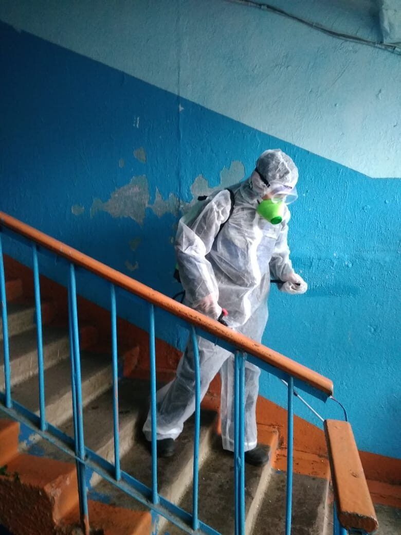 В поселке совхозе "Красное сельцо" сотрудниками ТСЖ "Красносельцовское" ежедневно проводится дезинфекция входных групп, подъездов, лестничных площадок и поверхностей общего доступа в многоквартирных домах..