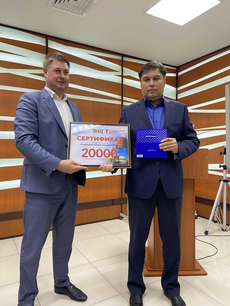 23 сентября в пресс-центре Дворца водных видов спорта городского округа Саранск состоялось торжественное заседание с вручением заслуженных наград командам-победителям и призерам республиканского фестиваля бега. Министр спорта, молодежной политики и туризма Республики Мордовия А.В.Савилов наградил за первое место директора МАУ «Центр физической культуры и спорта» Рузаевского муниципального района О.Л.Антонова сертификатом на приобретение спортивного инвентаря на сумму 20000 рублей.