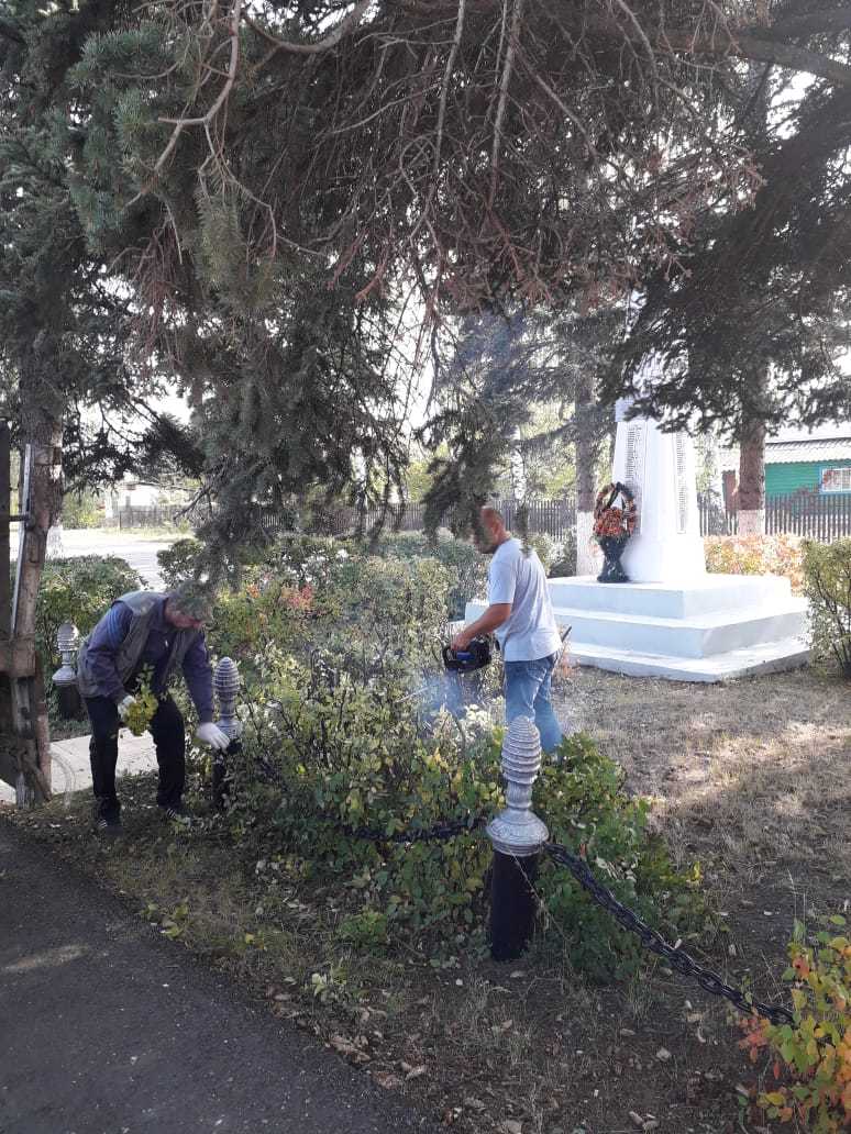 23 сентября 2020 года произведена санитарная обрезка кустарника у Обелиска- стелы павшим воинам в годы Великой Отечественной войны в п. Совхозе "Красное сельцо"