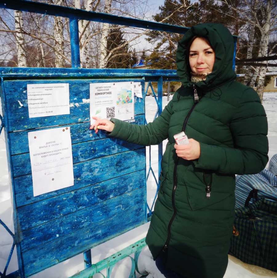 В Левженском волонтеры уже приступили к работе. Юлия Игонькина расклеила листовки с информацией о предстоящем голосовании.