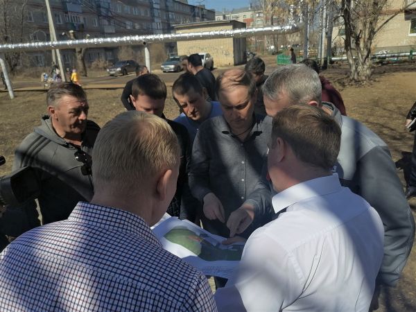С главным инженером АО «МЭК» Сергеем Тесленко он обсудил перенос сетей теплоснабжения под землю на территории будущей зоны отдыха, а в районе размещения детской и спортивной площадок попросил оформить их более эстетично. Также он обратил внимание на покосившиеся столбы линий электроснабжения и большого количества проводов на многоквартирном доме.
