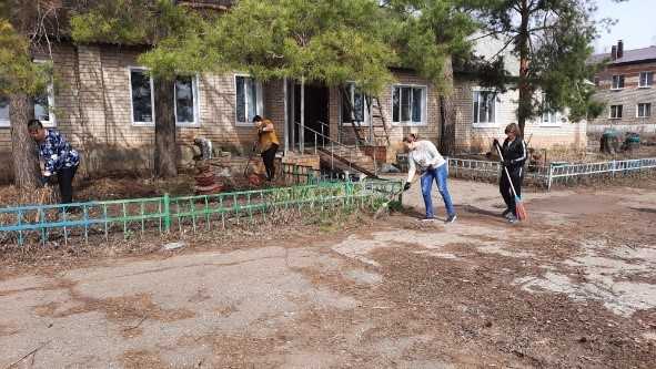 После зимы и обильного количества снега нам необходимо очистить посёлок от мусора. Общими усилиями мы должны сделать его чище, красивее, комфортнее. Вооружившись граблями и мешками для мусора все приступили к работе.