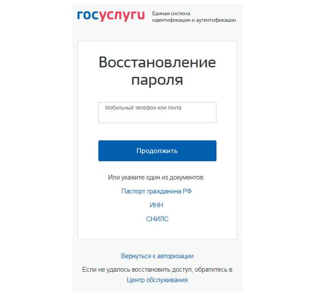 Восстановить пароль к стандартной или подтверждённой учётной записи можно по СНИЛС, ИНН и паспорту гражданина РФ. Поэтому, даже если вы выбрали восстановление по электронной почте или телефону, система всё равно попросит сначала указать СНИЛС, ИНН и паспорт гражданина РФ. После этого вы сможете выбрать способ восстановления — по ссылке на электронную почту или по коду на номер телефона.