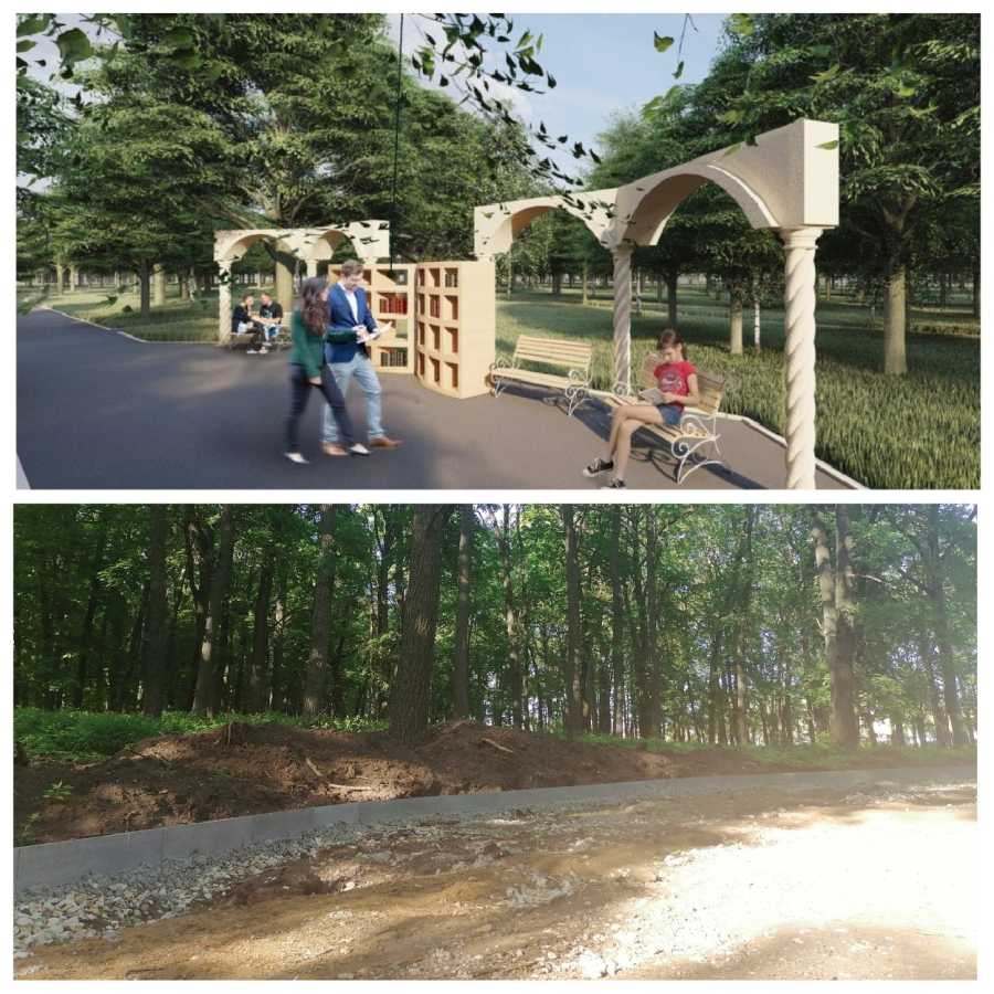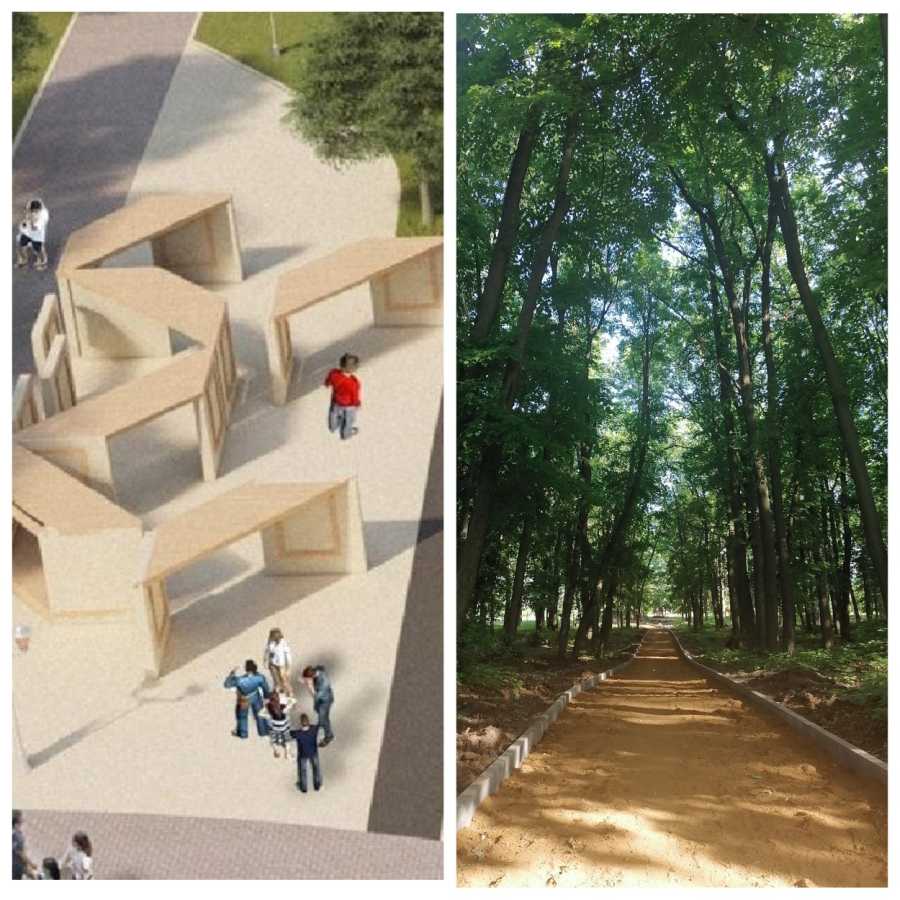 В центральной части обновленного парка будут установлены солнечные часы на фоне герба рода Струйских. На площадке лекционного зала «Парнас» расположится выставочная галерея. В южном направлении от центра - террасированный спуск, наполненный информационными стендами о поэтах и писателях Рузаевки. Трилунную аллею по обе стороны замкнут ротонды. На пути к одной из них окажется открытая библиотека с колоннадой. А по центру можно будет отдохнуть на качелях под навесом «Страницы книг».
