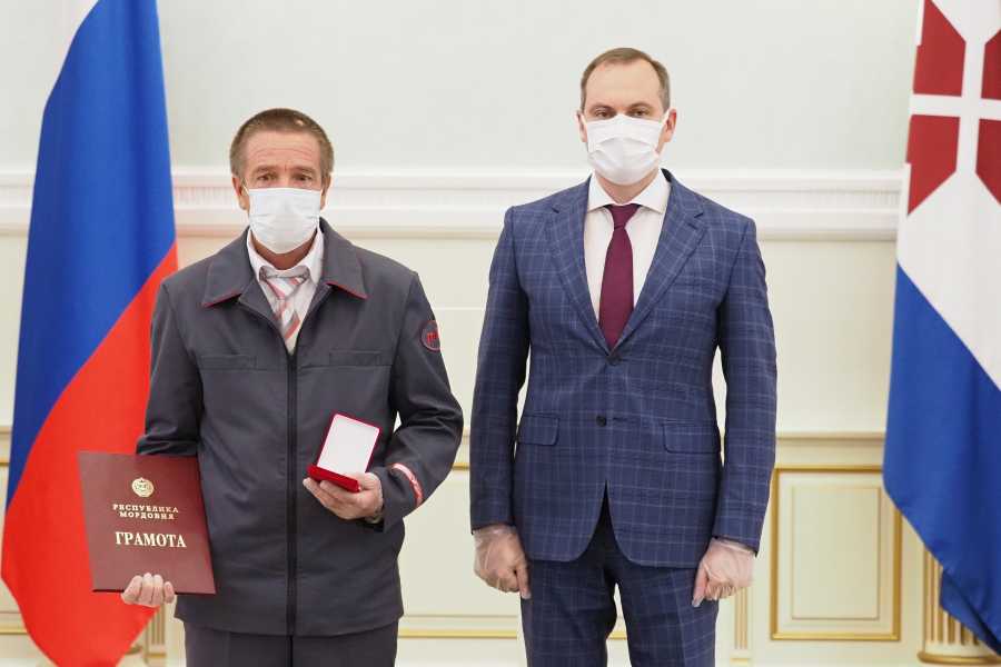 На торжественном собрании железнодорожники Мордовии получили заслуженные государственные и ведомственные награды. За большой вклад в развитие железнодорожного транспорта и многолетнюю добросовестную работу почетное звание «Заслуженный работник транспорта Республики Мордовия» присвоено инструктору локомотивных бригад эксплуатационного локомотивного депо Рузаевка Сергею Кузюкову, начальнику района контактной сети Хованщина Рузаевской дистанции электроснабжения Виктору Порваткину, осмотрщику-ремонтнику вагонов Эксплуатационного вагонного депо Пенза Дмитрию Дарькину.