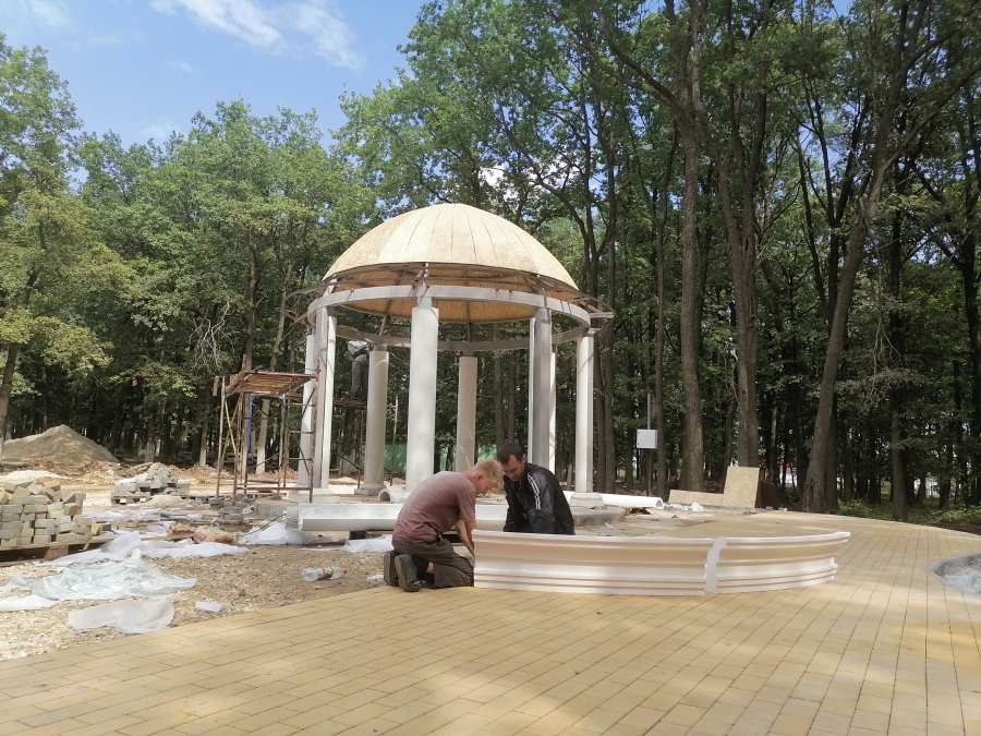 Также ведутся земляные работы. Уже готов террасированный спуск, со дня на день начнется асфальтировка дорожек.