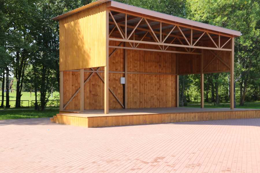 Вторая площадка более обширная с уличными тренажерами, детскими комплексами, арт-объектами и сценой для проведения мероприятий.