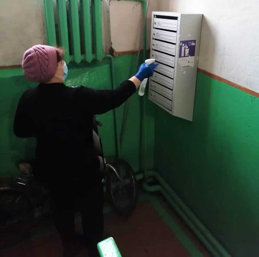 Коммунальщики обрабатывают дезинфицирующими средствами контактные поверхности — дверные ручки, перила, дверцы почтовых ящиков. Используются хлорсодержащие препараты, одобренные Роспотребнадзором.