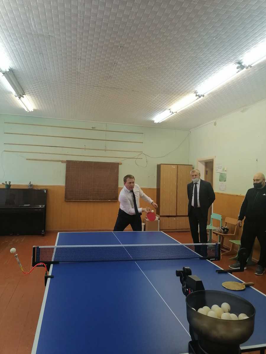 Также из Физкультурно-оздоровительного комплекса сюда переехала секция тенниса. Для нее закуплен новый инвентарь, пять теннисных столов, тренировочные роботы. С одним из них сыграл Александр Сайгачев.