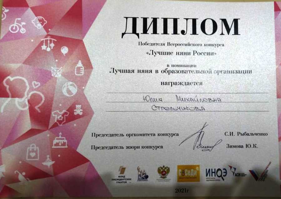 Юлия Михайловна продемонстрировала на состязании свою эрудицию, креативность, способность действовать в разнообразных профессиональных ситуациях и стала победителем данного конкурса в номинации «Лучшая няня в образовательной организации».
