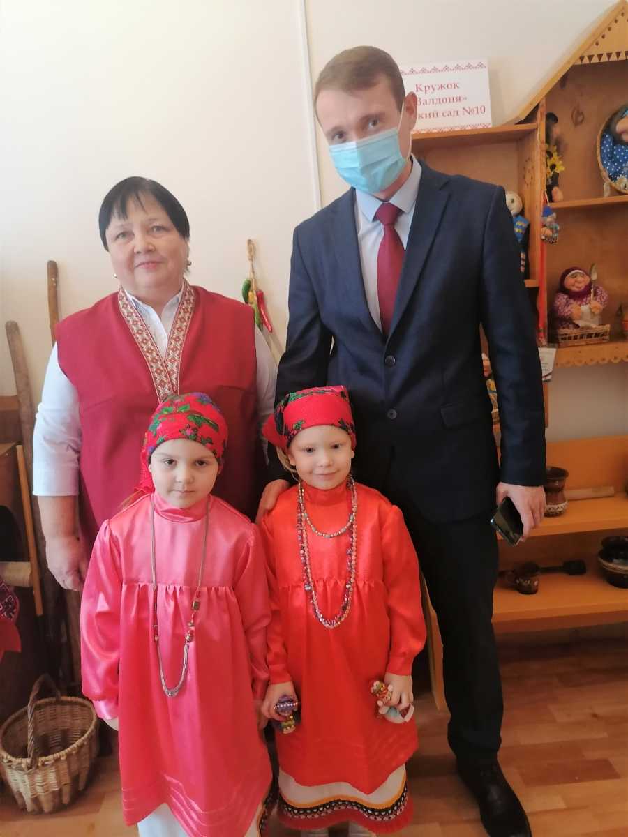 Он был открыт в 1971 году. Сейчас здесь функционирует десять групп, которые посещают 200 дошкольников. Приоритетным направлением работы является поликультурное образование. Реализуется программа по изучению национального языка и даже активно развивается музей национального быта «Мордовская изба». Именно с него и начал свое знакомство с детским садом Александр Борисович. Девочки из младшей группы поприветствовали его по-мордовски и подарили куклу мокшаночку, к оформлению костюма которой они тоже приложили свои усилия.