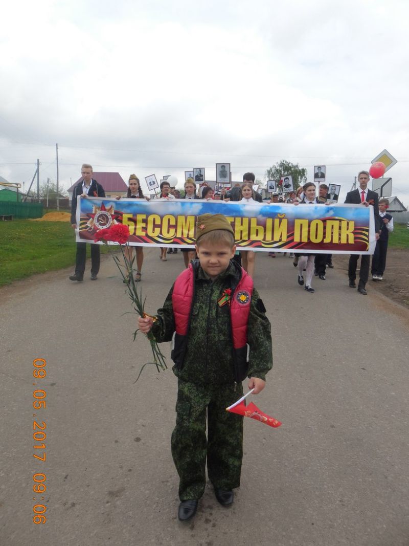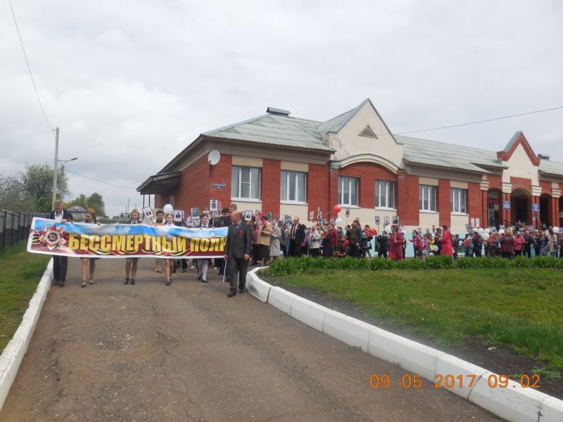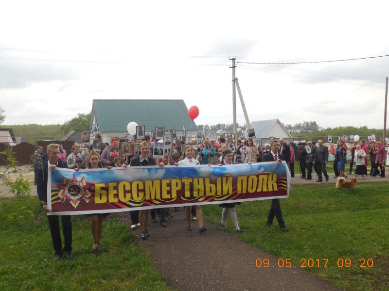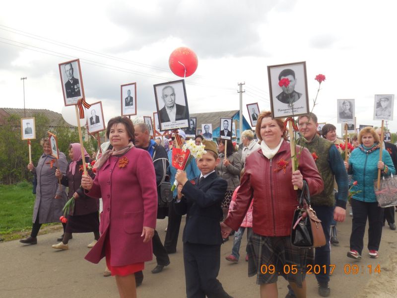 Затем состоялось шествие «Бессмертного полка» от Сузгарьевской школы. Около 100 человек пронесли фотографии своих отцов, дедов, прадедов по центральным улицам села к памятнику.