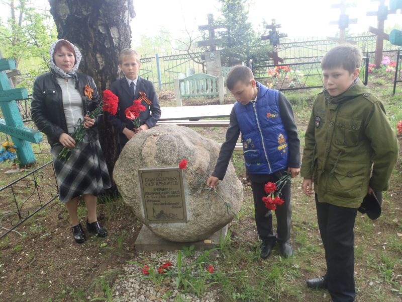 9 мая в с.Сузгарье началось с возложения гвоздик на могилы ветеранов войны и к памятному камню "Умершим и похороненным здесь в 1941-43гг. войнам Великой отечественной войны".