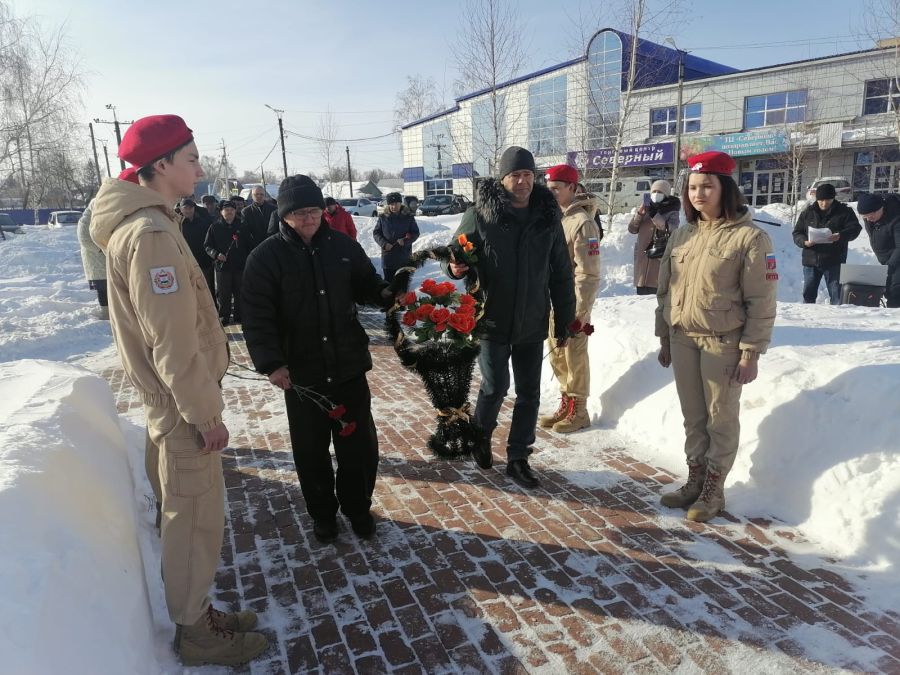 Всех погибших в Афганистане, Чечне, а также в локальных войнах и вооружённых конфликтах почтили минутой молчания. В завершение митинга все его участники возложили цветы к памятному знаку.