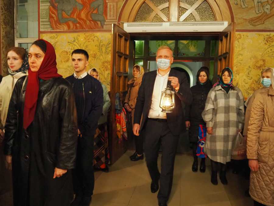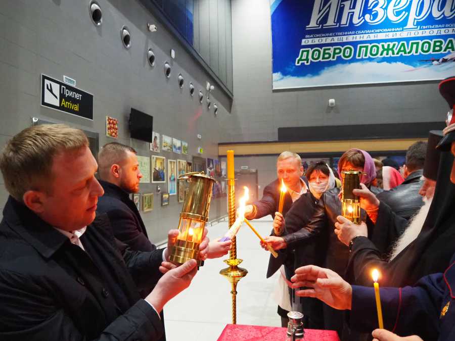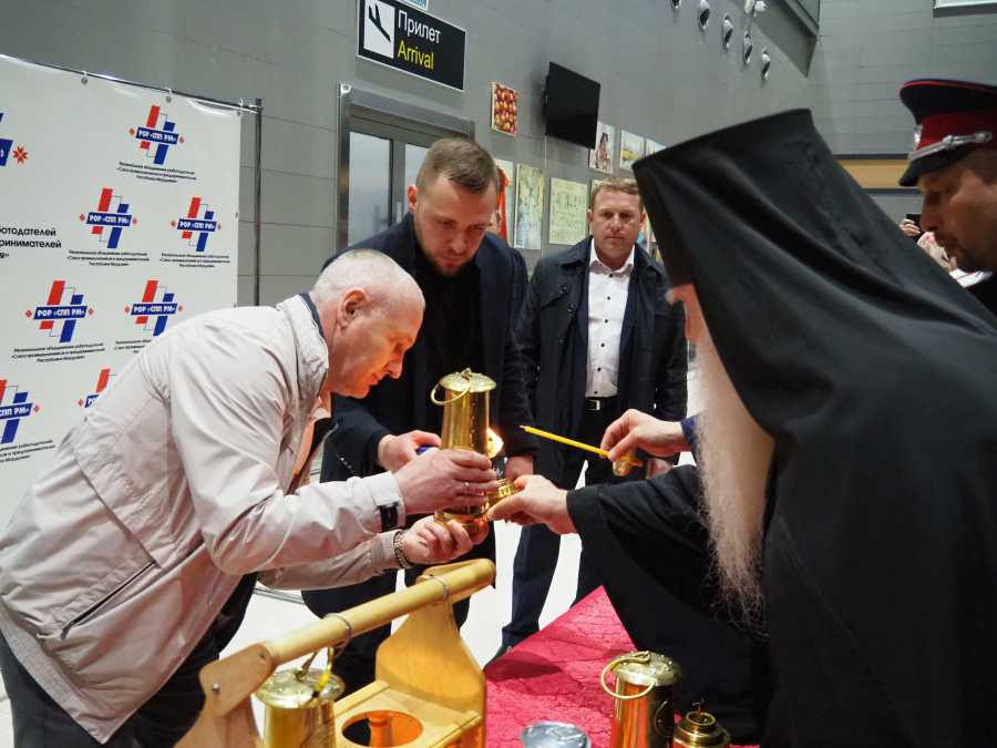 Нашу делегацию возглавил глава администрации ГП Рузаевка Алексей Домнин. Он привез святыню из аэропорта в Свято-Троицкий Соборный храм. По окончанию службы от него все желающие прихожане смогли зажечь свечи и лампадки.