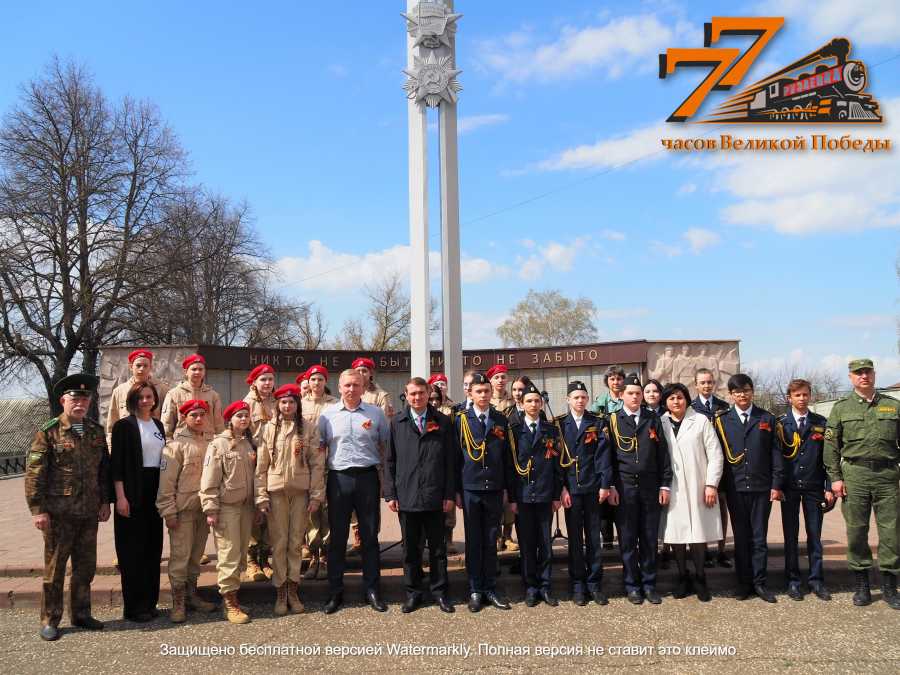 В Рузаевском районе в честь памятной даты начинаем отсчитывать «77 часов Великой Победы». В рамках одного часа будут проходить мероприятия, приуроченные к празднованию 9 мая. Старт дан сегодня, 26 апреля, акцией «Георгиевская ленточка». Она прошла возле памятника рузаевцам, погибшим в борьбе за установление Советской власти и в Великую Отечественную войну 1941-1945 гг. В ней приняли участие глава Рузаевского района Александр Юткин и глава администрации ГП Рузаевка Алексей Домнин, юнармейцы гимназии №1 и кадеты школы №5.