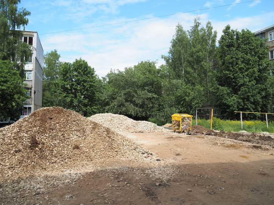В настоящее время ведется подготовка основания для асфальтировки. Твердое покрытие планируется и в зоне контейнерной площадки, но сами баки по желанию жителей будут перенесены в другое место.