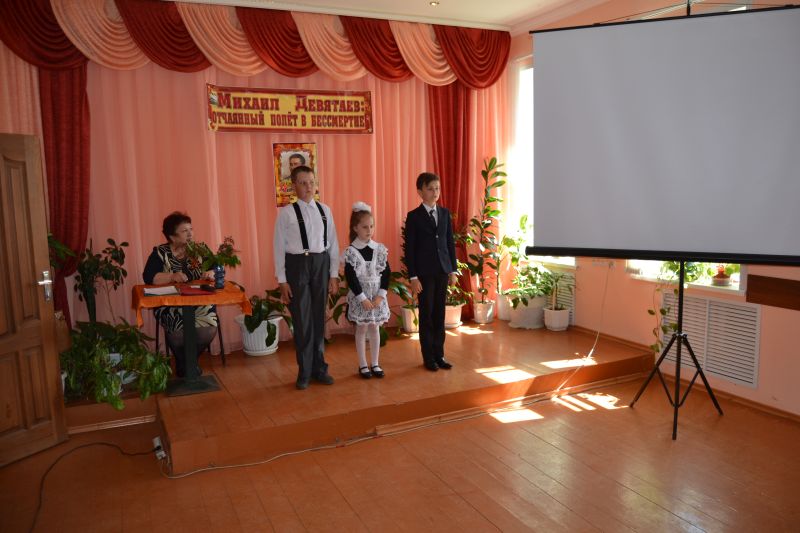23 мая 2017 года в КДЦ Арх-Голицынского сельского поселения прошел вечер памяти "Его позывной - Мордвин", посвященный 100- летию со дня рождения Героя Советского Союза М.П. Девятаева. Открыла вечер памяти Заведующая библиотекой- филиалом № 6 Колчина Н.В., она напомнила зрителям, что уже не первый раз библиотека приезжает в с. Архангельское Голицыно с различными мероприятиями и надеется, что это мероприятие тоже окажется очень интересным. Надежда Валентиновна провела паралель между двумя судьбами заключенных в немецких концлагерях : Девятаевым М.П. и Вандышевым С.И..