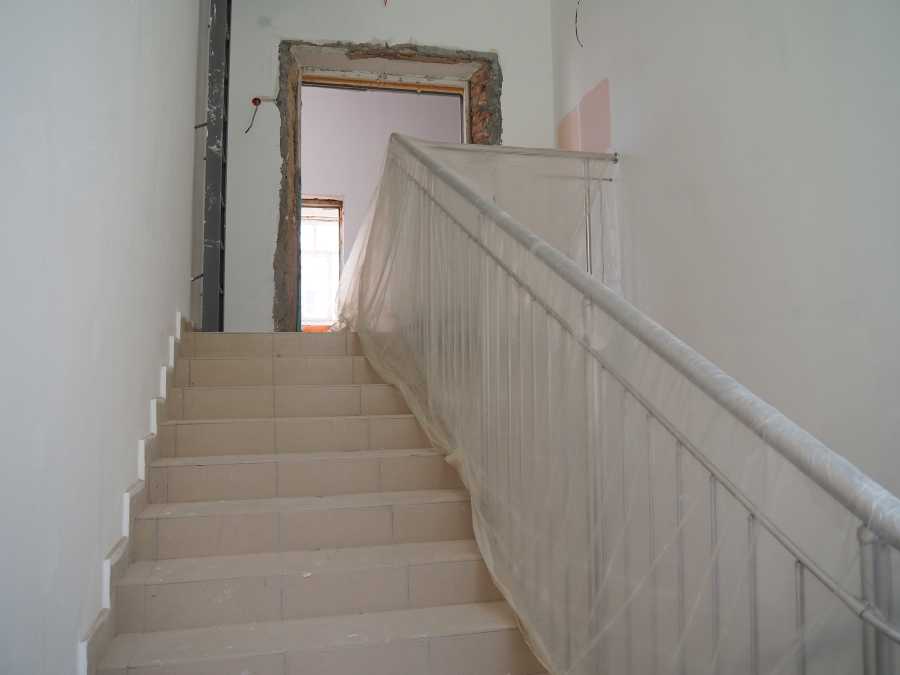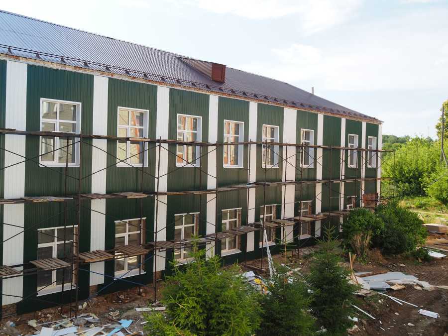 Здесь произведена замена всех коммуникаций, окон, полов, потолков, завершается отделка стен. Параллельно ведется обшивка фасада. Следующий этап - малярные работы и благоустройство территории.