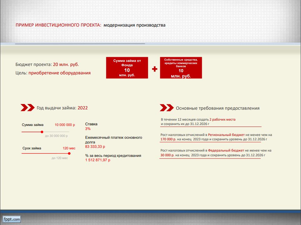 170 млн. рублей для предоставления долгосрочных инвестиционных займов