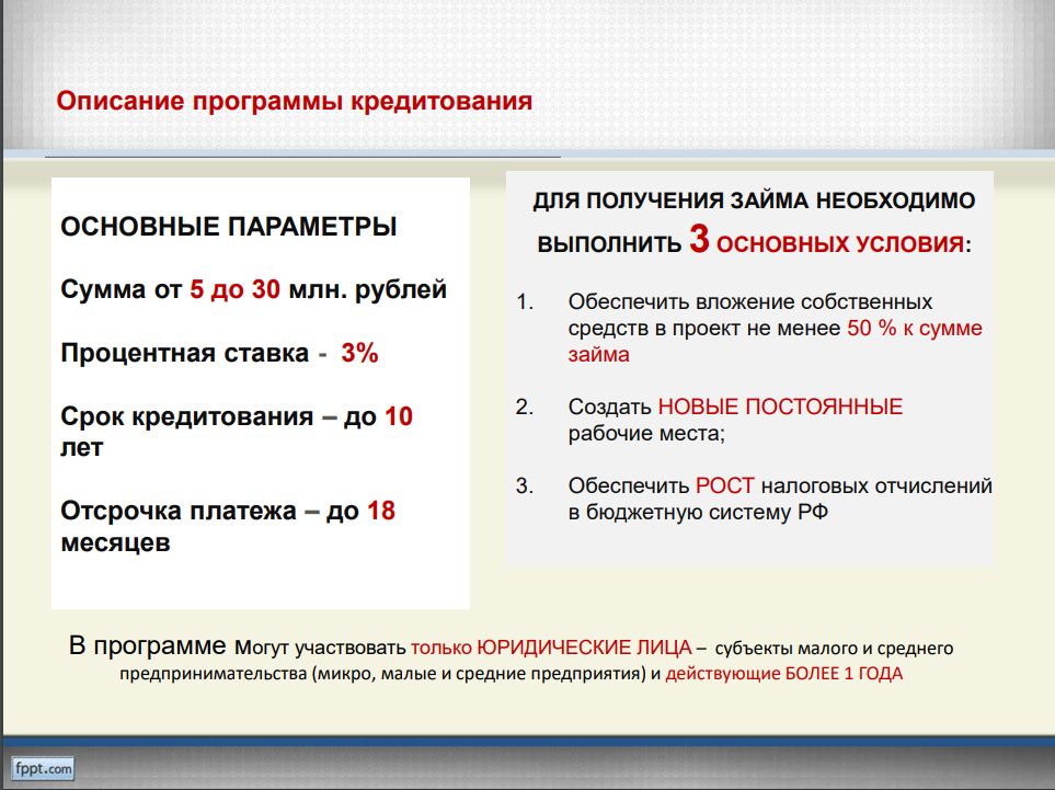 от 5 до 30 миллионов рублей по ставке 3% годовых на срок до 10 лет. При