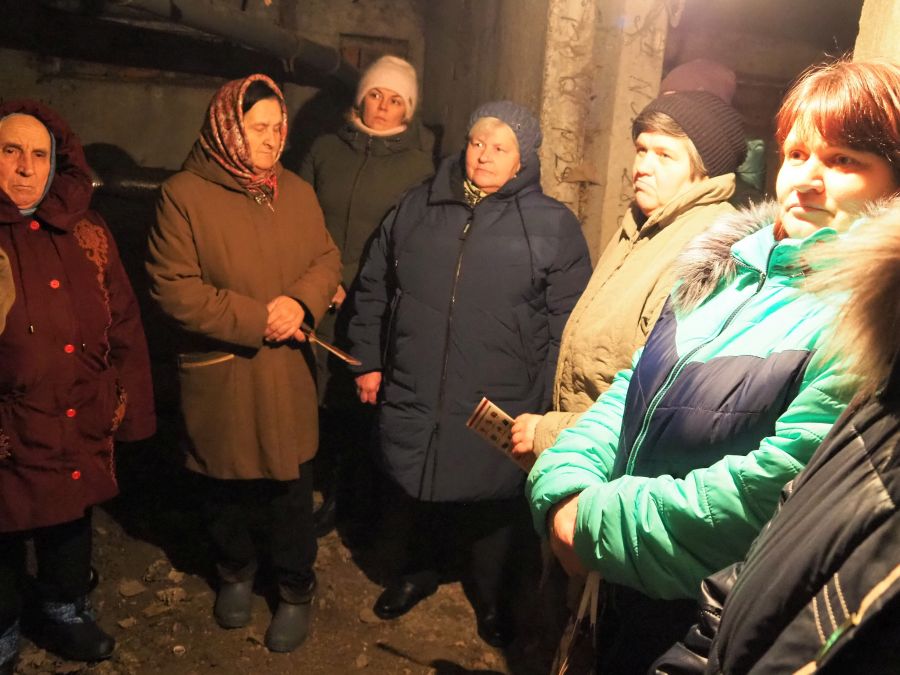 По сигналу «Внимание всем!» они покинули свои квартиры и зашли в подвалы. Вход осуществляется там, где нанесена надпись «укрытие». По антитеррористической безопасности в мирное время они должны быть закрыты. В случае сигнала гражданской обороны замки можно сорвать. Но не всем это под силу. Александр Юткин поручил проработать с управляющими компаниями вопрос о передаче ключей жителям первых этажей, которые регулярно находятся дома.