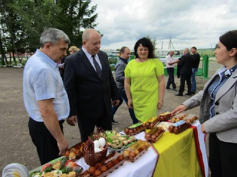У школы развернулась выставка народных умельцев, была представлена продукция местных производителей.